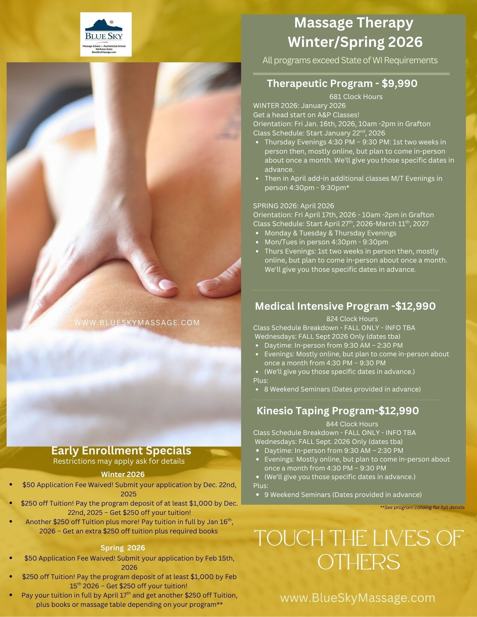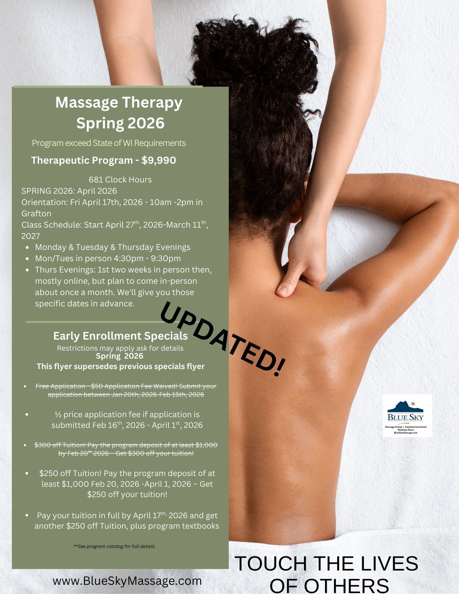 Email: Admissions@BlueSkyMassage.com, Grafton@BlueSkyEdu.Org